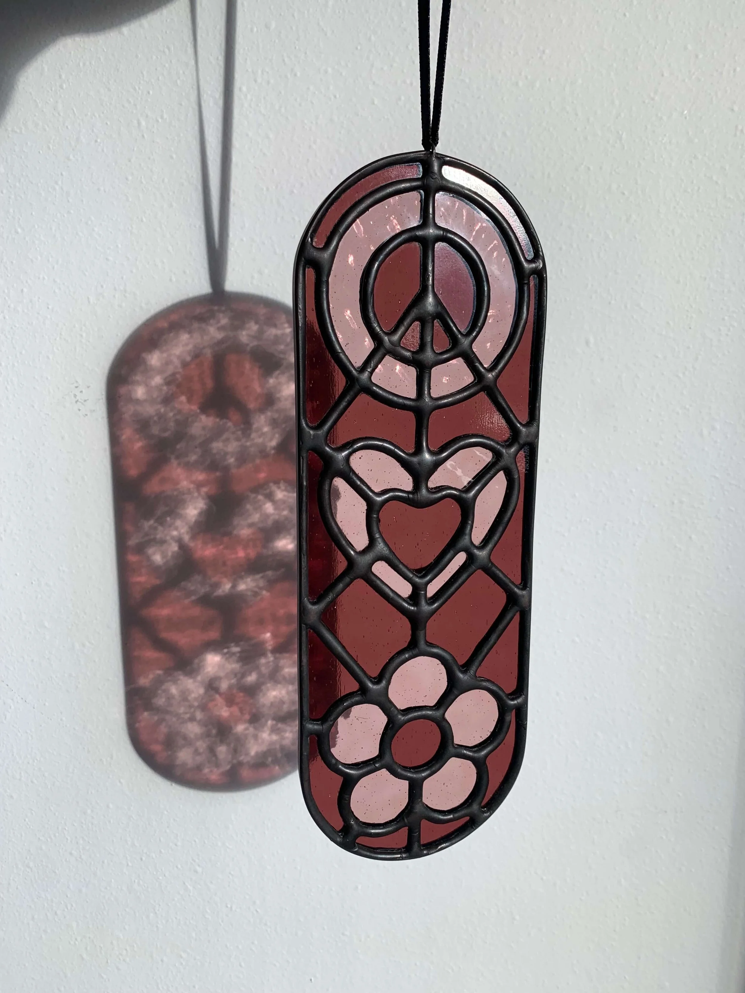 PEACE LOVE FLOWERS, 2025Stained glass2.75 x 8 inchesReleased on February 14th, a symbolic representation of the 3 things I value most